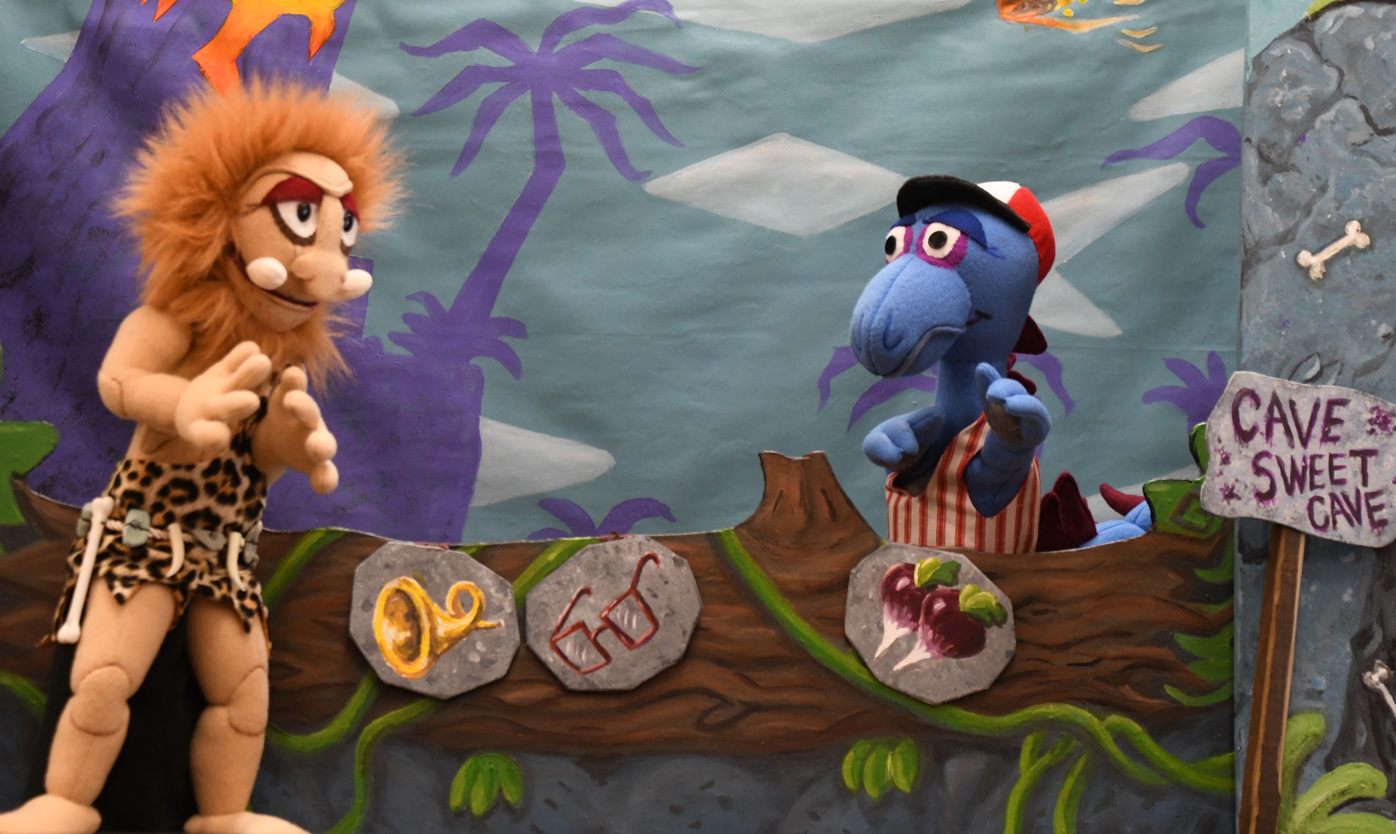 Granny Brachiosaurus is telling her friend Grumpy Greta, a Pterodactyl, the tale of three dinosaur brothers. A Stegosaurus, a Triceratop, and a Ceratosaurus who all love to cross a tree bridge each day to nap, eat, and play on the other side. But what will happen when Ugh, a trollish caveman, moves in under the bridge? Our show teaches children the importance of working together, problem solving, and getting along. The pre-hysterical comedy pokes fun at the famous “3 Billy Goats Gruff” tale through the use of imagery, music, and songs. A family treat millions of years in the making!