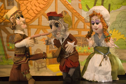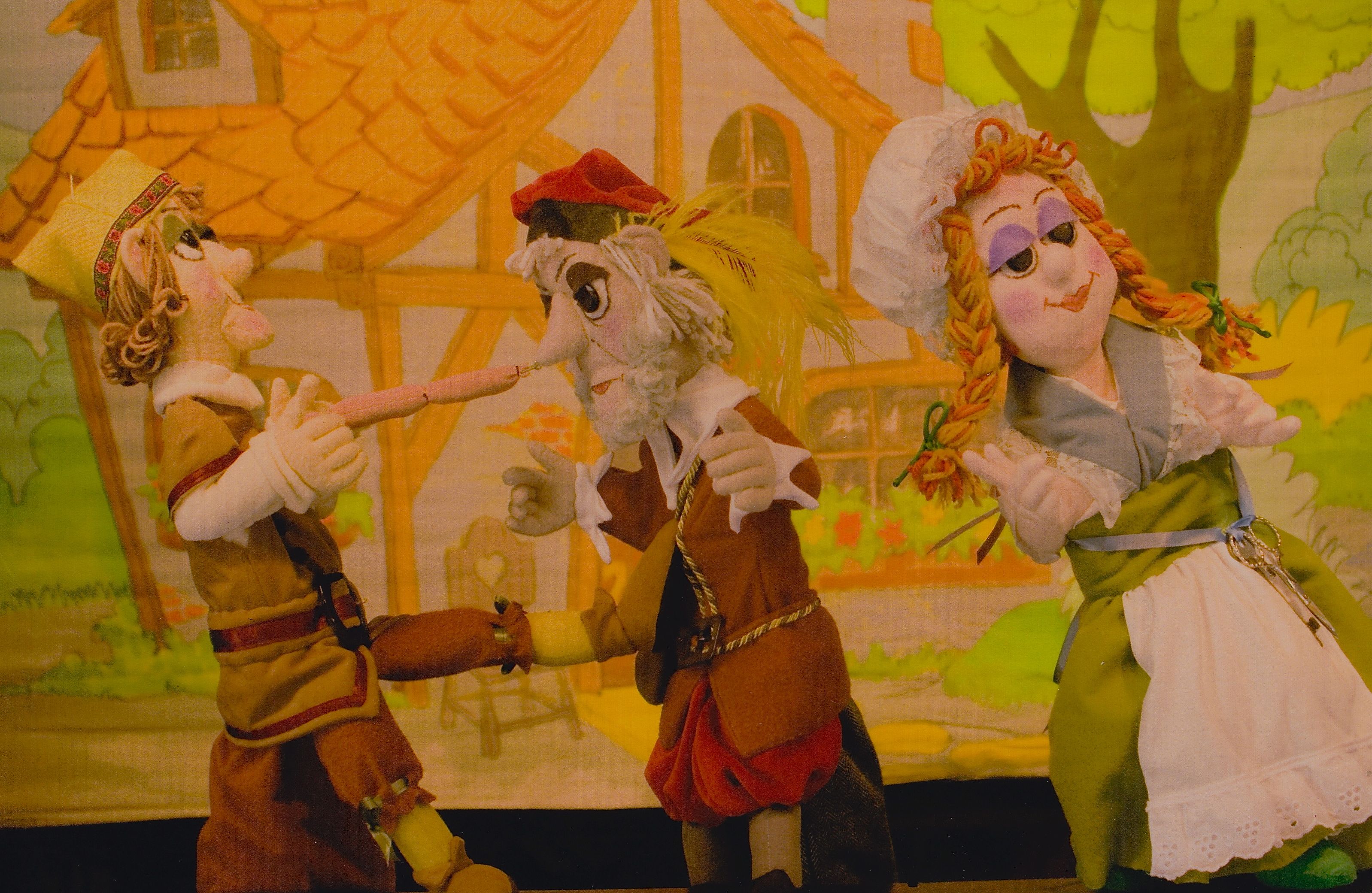 The enchanting magic of the German fairy tales come to life in the joining of two classics: Stone Soup & The Three Wishes. Young Hans wishes to marry his childhood love Elisa. How- ever, Elisa's father is very stingy and greedy and keeps coming up with reasons for the marriage not to take place. When he says that he doesn't have enough food to feed all the guests, Hans suggests they make "Stone Soup". The father is quickly fooled and soon uses his own food ingredients to make a delicious meal he thinks is made from a stone. Finding out he has been tricked, the father sends Hans into the forest to chop wood. While there Hans frees a trapped gnome, named Fiddle- sticks, and is given three magic wishes. Soon all sorts of funny things happen as the three wishes are misused and a lesson is learned. Yet...all live happily ever after. A fun show for all ages featuring authentic folk music and colorful scenery.