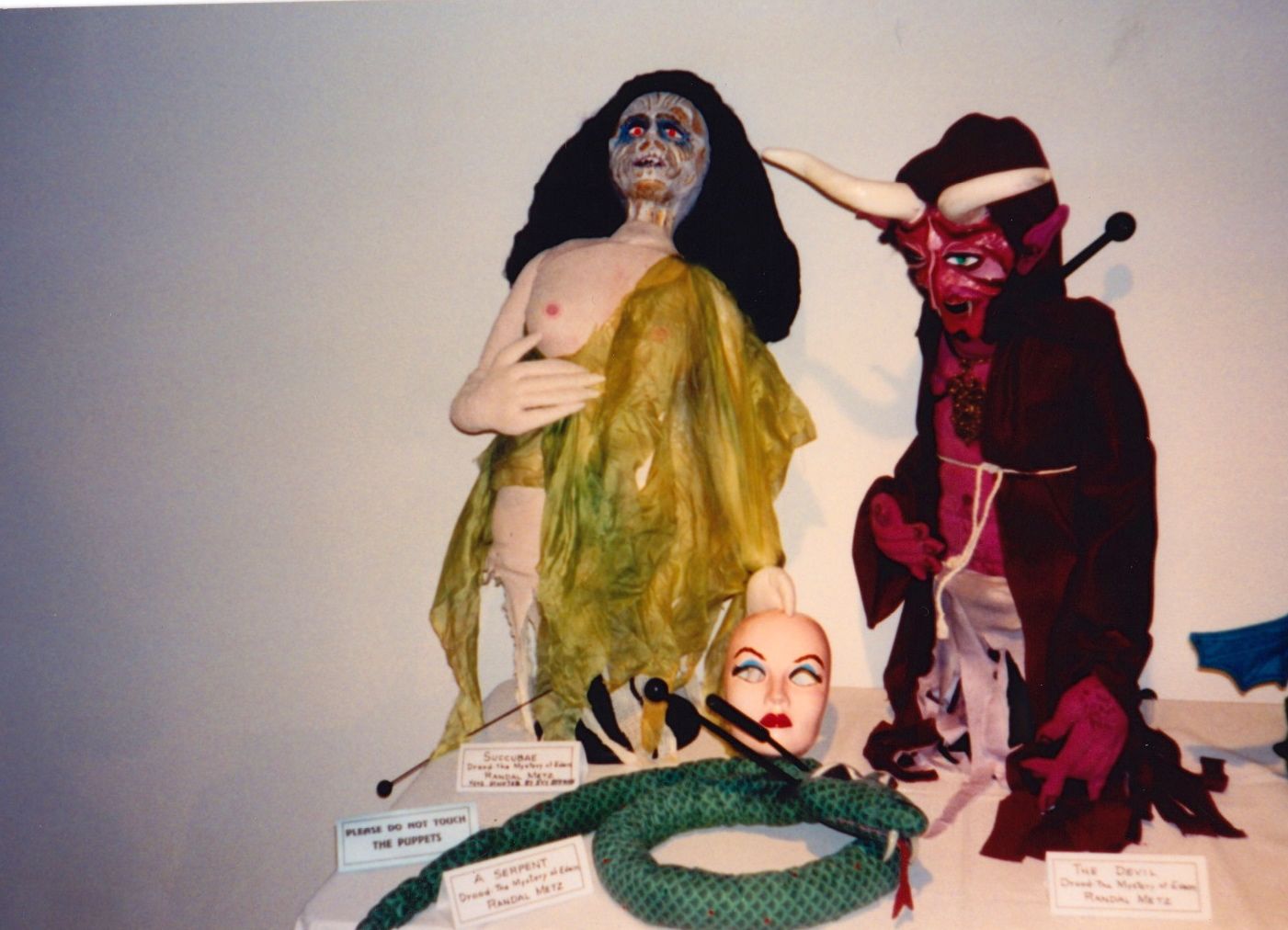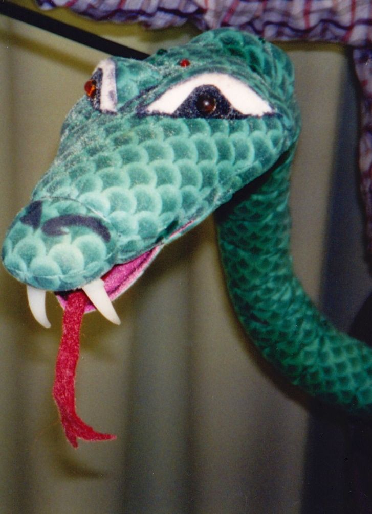 At one point in the play, the villain - Jasper, goes to the opium den of Madam Puffer. He hallucinates about his denied love for Rosa, who he is assigned to be guardian for. The play calls for a dance number at this moment. The Puppet Company was contacted to come up with an idea for Jasper's nightmare that wouldn't call for an expensive dance segment. Using the smoky atmosphere of the opium den and the use of black lighting, we created large puppets that reek of Victorian morals and terrorize the drugged Jasper.