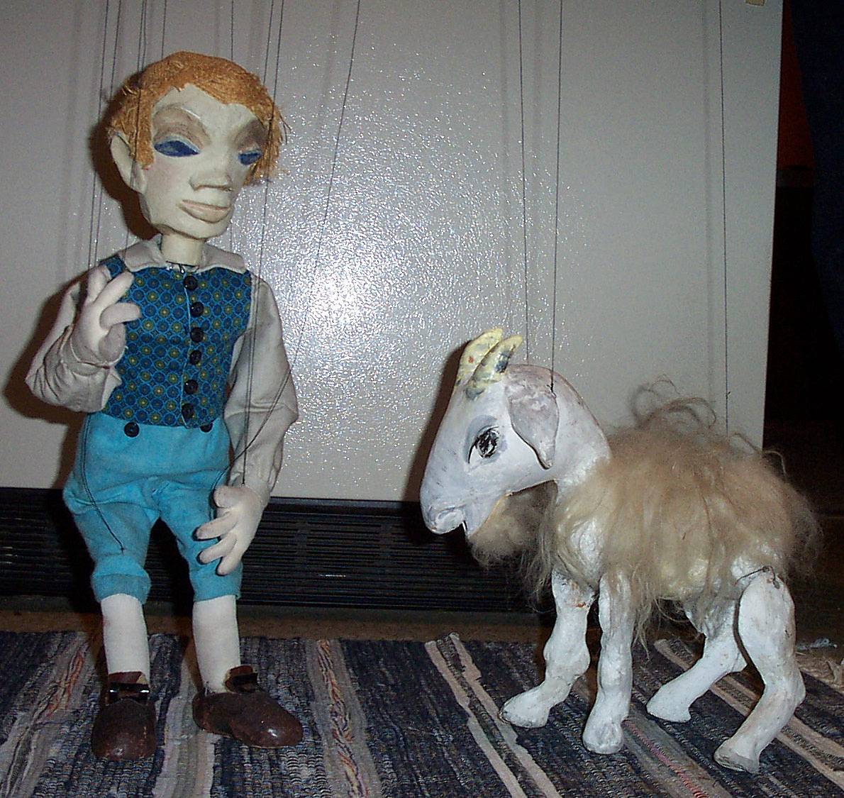 Everyone loves the "The Sound of Music." The musical of a family who sings together and escapes from the clutches of the Nazi party during World War II. The movie in 1963 was a smash hit starring Julie Andrews. And one of it's most memorable scenes is when Maria uses marionettes to sing "The Lonely Goatherd" song with the children. Although the stage musical does not call for puppets to be used, the images from the film remain a favorite with viewers. After many requests, the Puppet Company has built two marionettes of a little boy goatherd and goat which can be used easily in your stage production. The marionettes were modeled after authentic Austrian wood puppets. Easy to manipulate and large enough to be seen on stage, these puppets will add a heartwarming moment to your stage production of "The Sound of Music!"